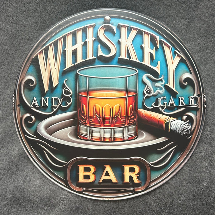 Whiskey & Cigar Circular Bar Sign 20x20cm