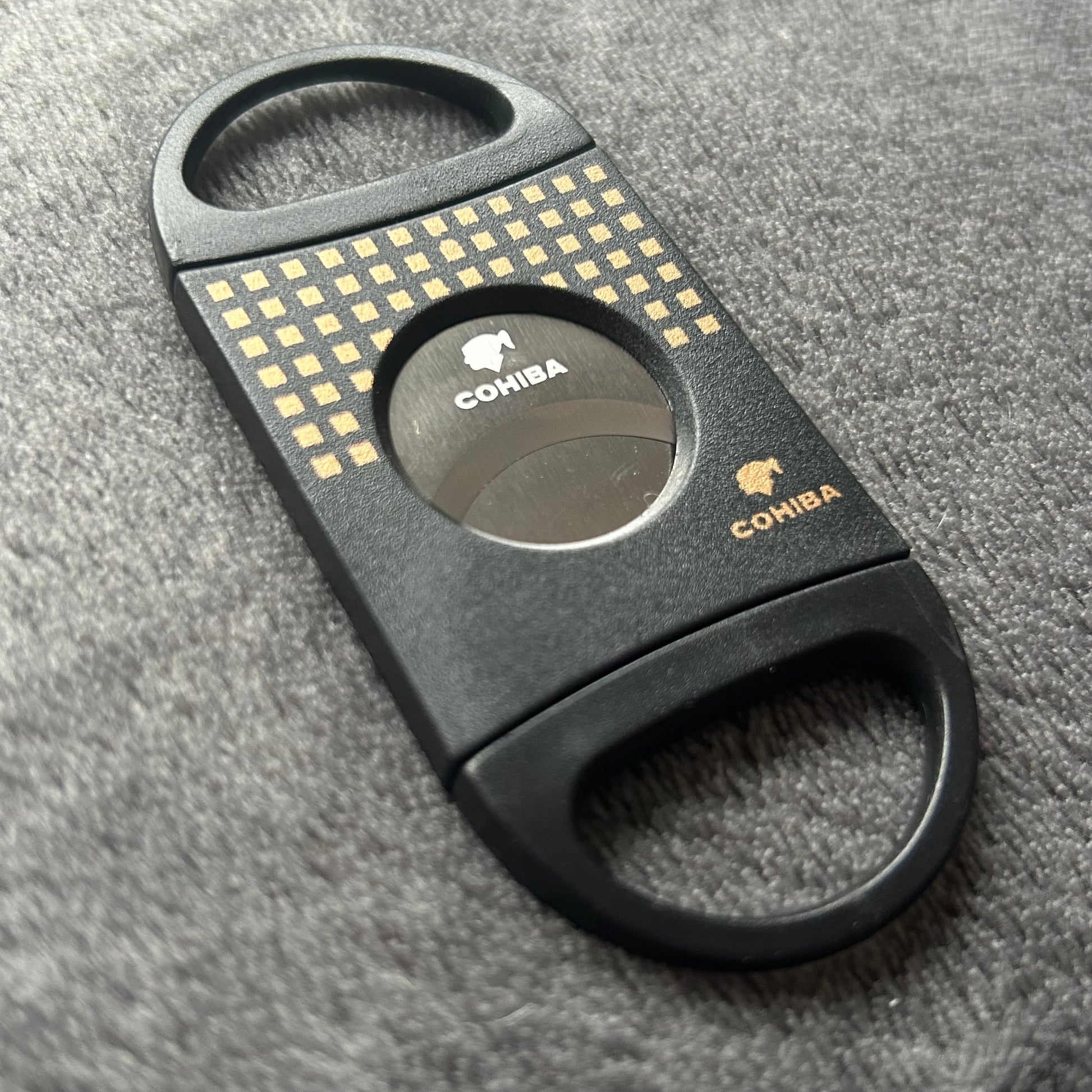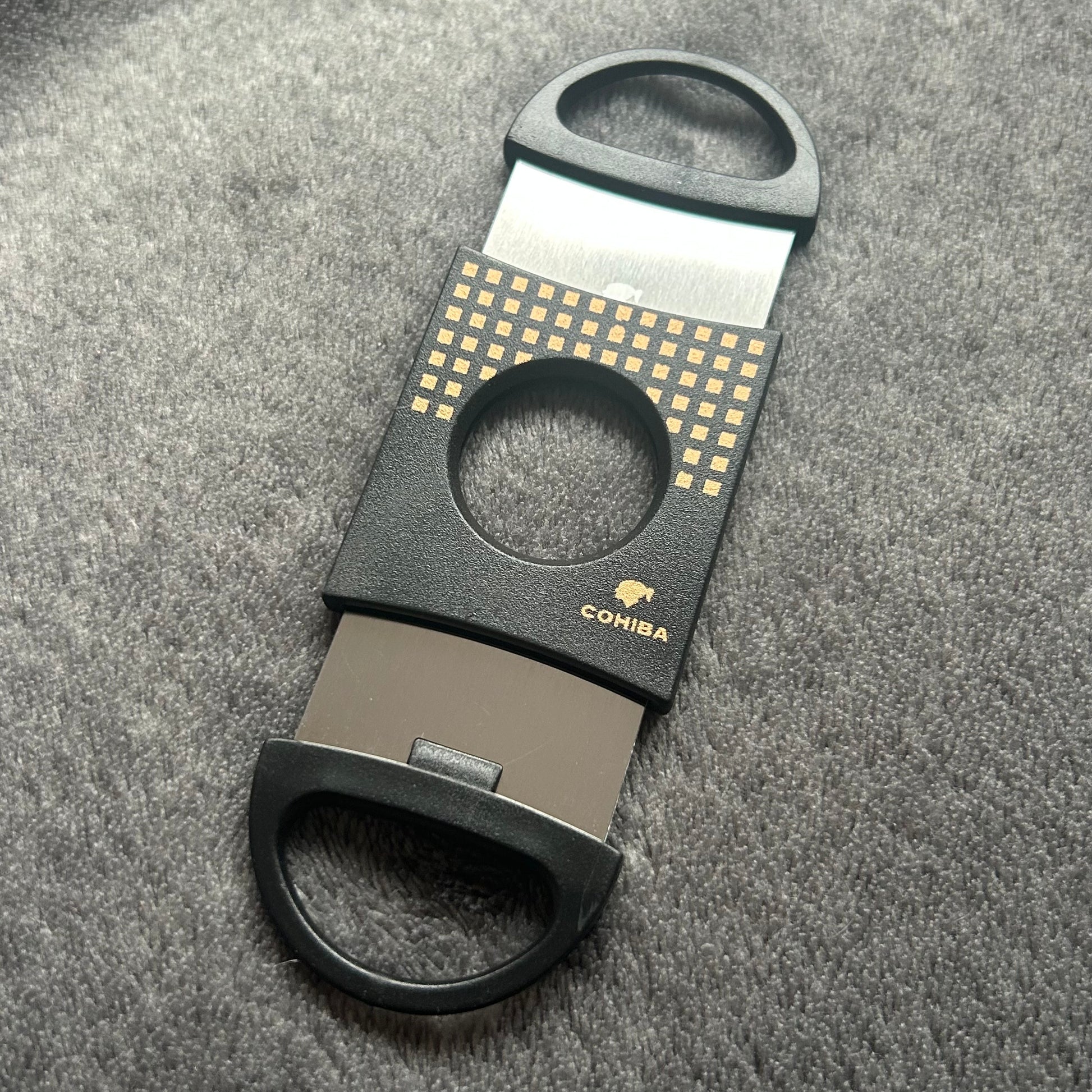The Cohiba Black Cutter is a precision tool designed for effortless cigar cutting, ensuring a clean, sharp cut every time. Crafted with durable stainless steel blades, it delivers consistent performance for a smooth draw, enhancing your smoking experience. Its ergonomic design offers comfortable handling, making it a reliable choice for both aficionados and connoisseurs seeking precision and quality in their cigar accessories.