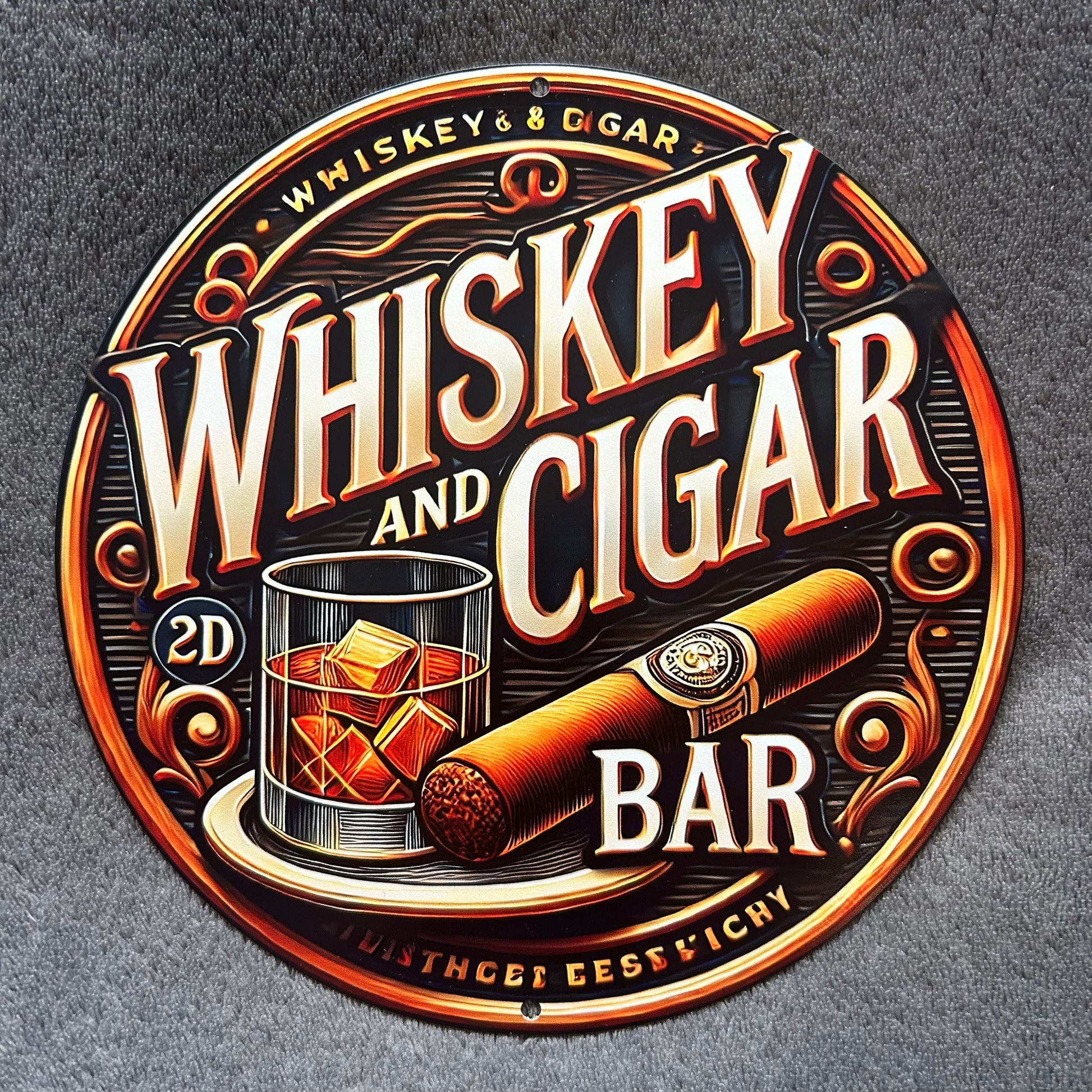Whiskey & Cigar Circular Bar Sign 20x20cm